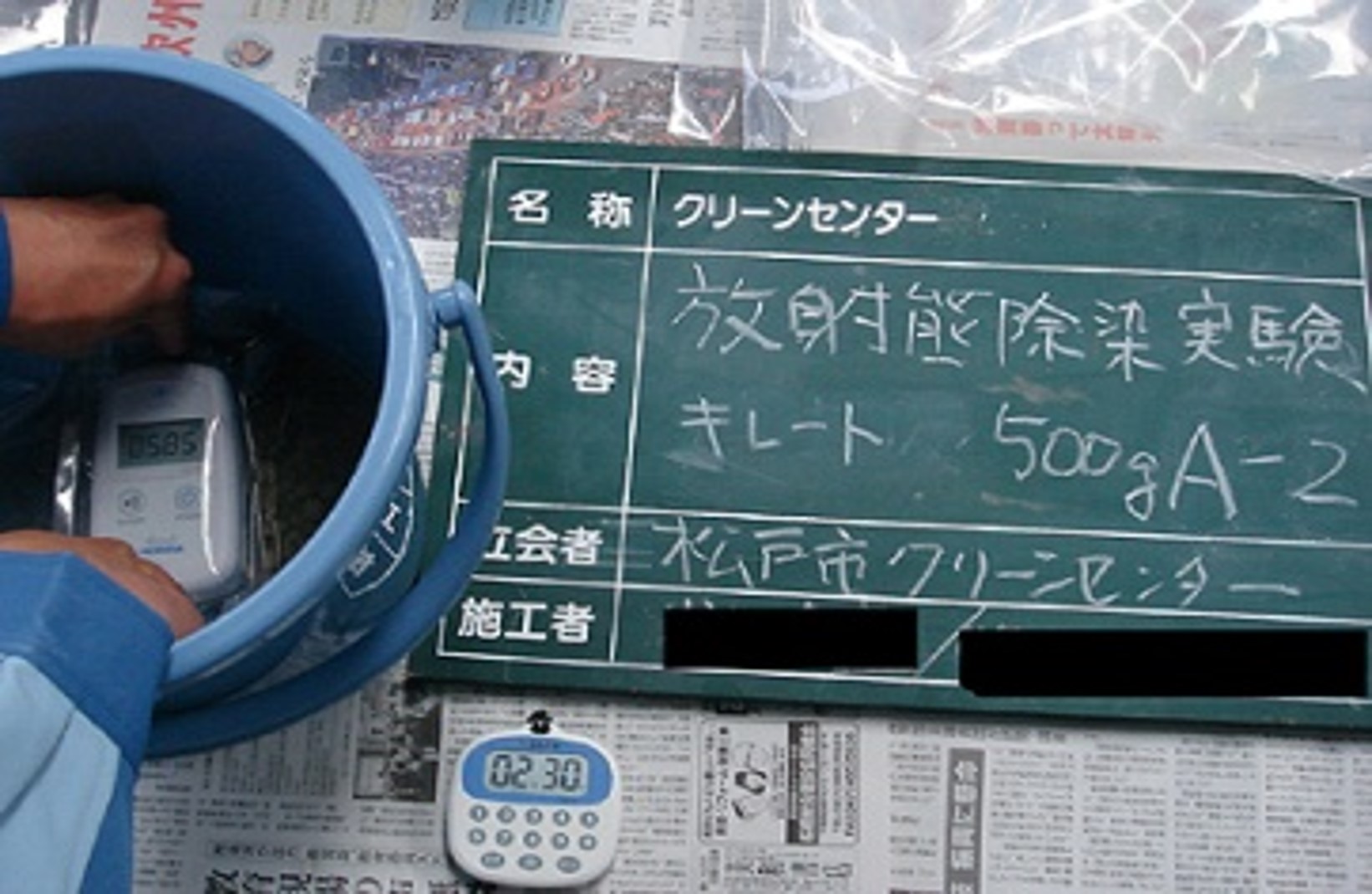 実験場所として福島県郡山市をベースに福島県内の各地で、2011年9月から実験を開始しました。2012年秋には放射線量を85%(最高値)減量できる溶剤トランサーの開発に成功し、福島県中浄水センターなどでの評価を行いました。